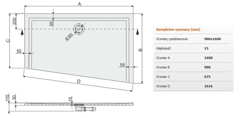 | średnica odpływu w mm | 90 |