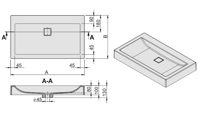 Prostokątna umywalka nablatowa Space Mineral jest wykonana z odlewu mineralnego.
