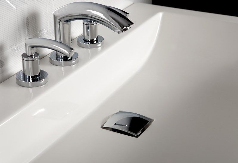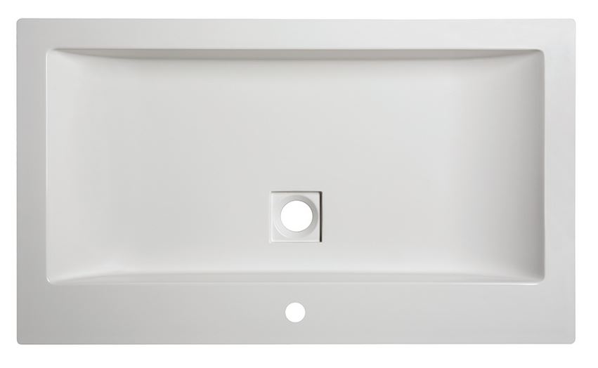 Prostokątna umywalka nablatowa Space Mineral jest wykonana z odlewu mineralnego.