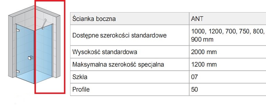 Ścianka boczna do kompletowania z drzwiami jednoczęsciowymi z serii Anea AN1C oraz AN13