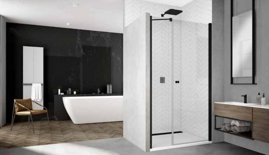 SANSWISS Solino Black Line drzwi wahadłowe 1-częściowe ze ścianką stałą w linii