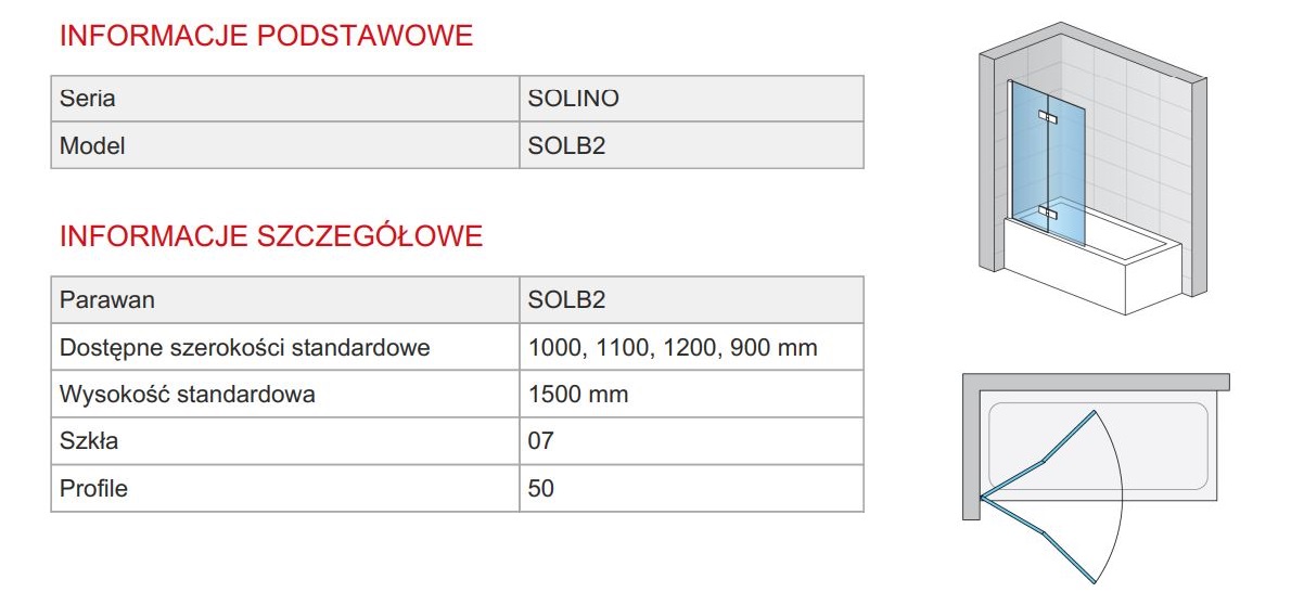 SanSwiss Solino parawan wannowy dwuczęściowy składany