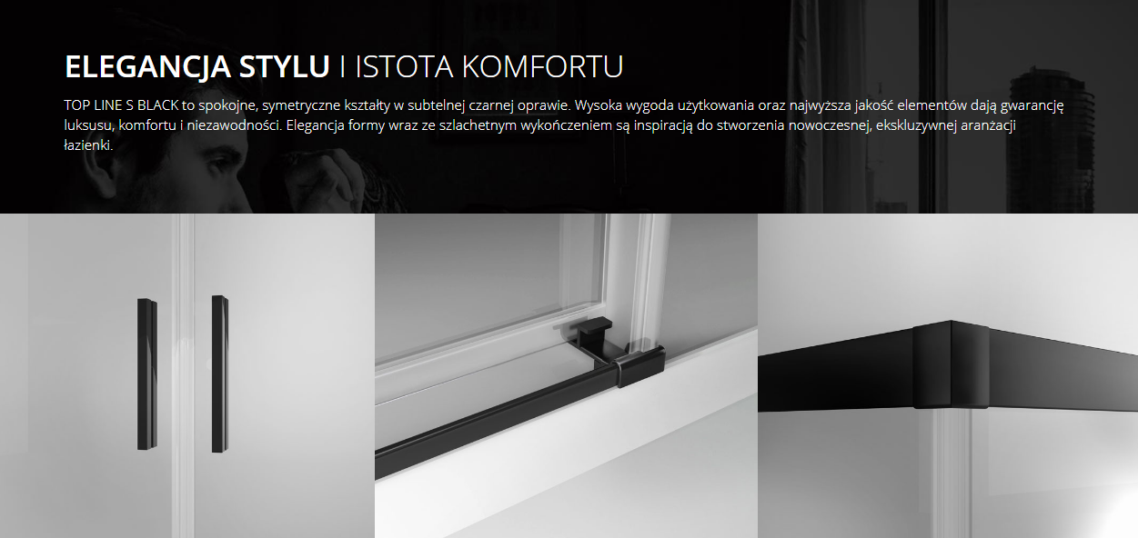 Seria TOP LINE S to spokojne, symetryczne kształty w subtelnej czarnej oprawie. Wysoka wygoda użytkowania oraz najważiejsza jakość elementów daje gwarancje luksusu, komfortu i niezawodności.