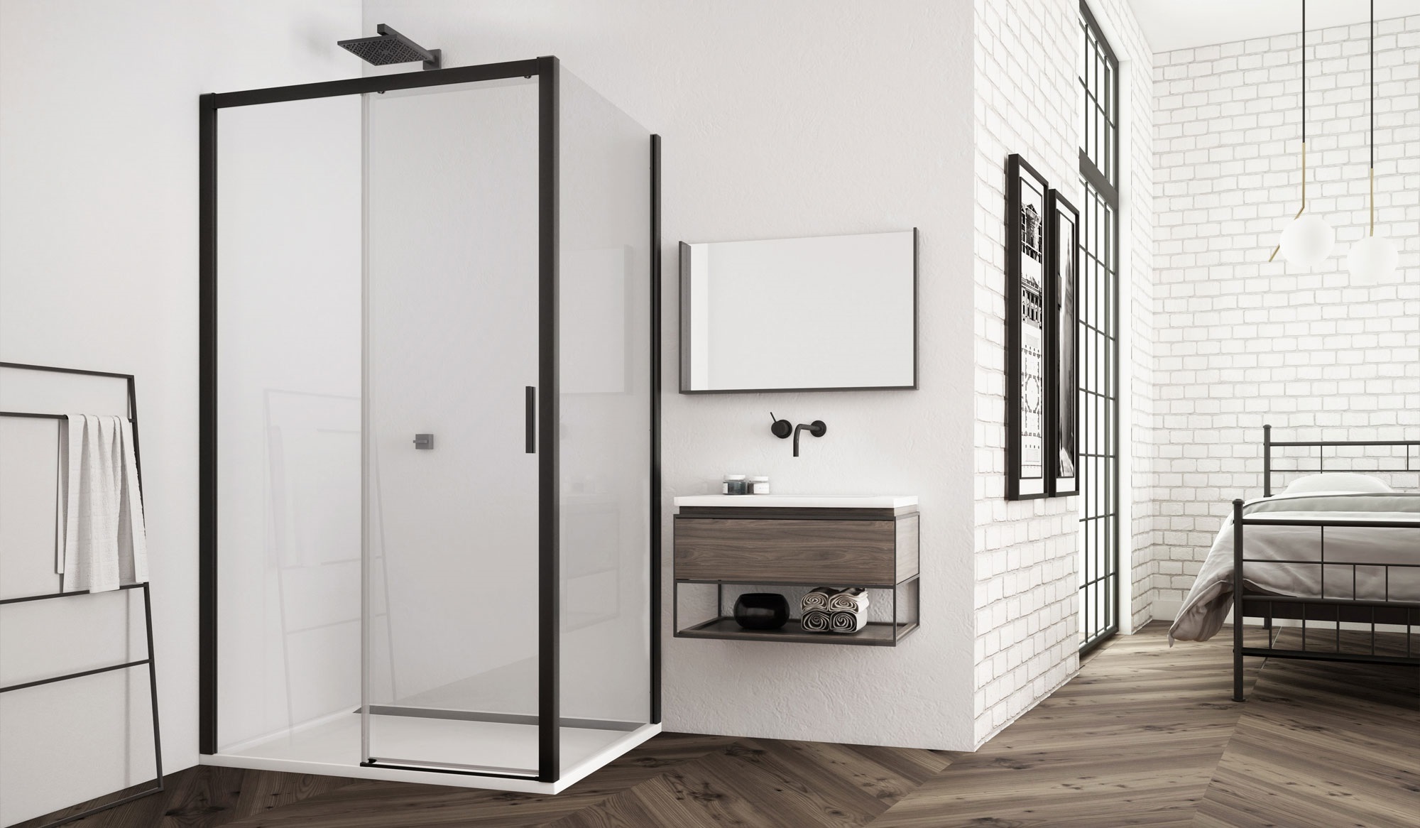 SANSWISS Top Line Black Line drzw przesuwne 1-częściowe ze ścianką stałą w linii
