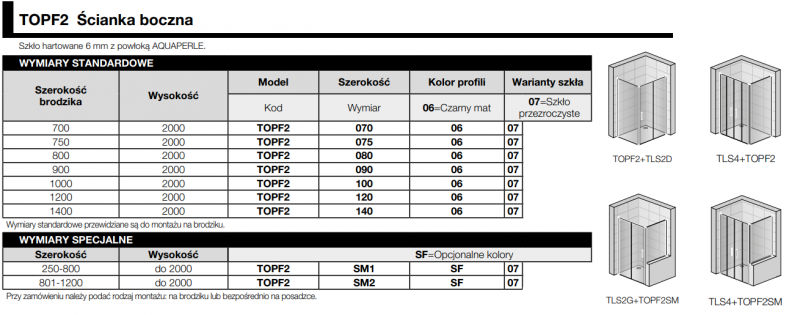 Ścianka boczna do kompletowania z drzwiami jednoczęściowymi z serii Top Line TLS2 i TLS4