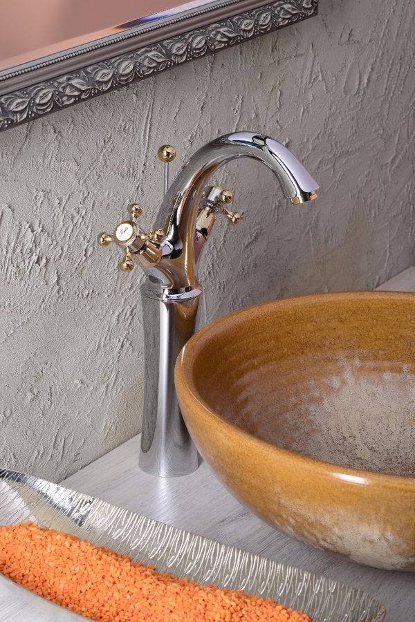 Opinie o: Sapho Antea bateria umywalkowa wysoka z korkiem automatycznym 30 cm retro złoty 3275L