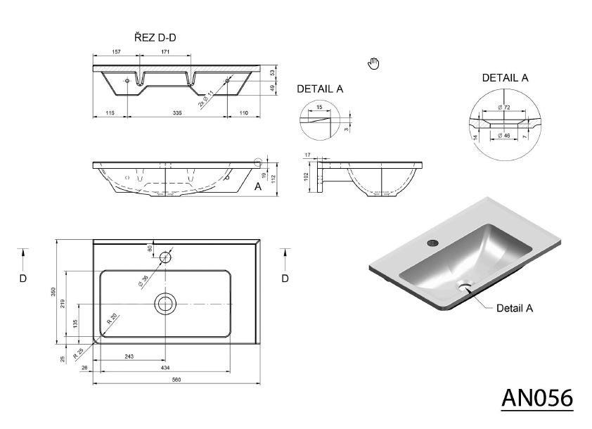 Umywalka narożna wisząca Arana -lewa (blat z prawej strony)