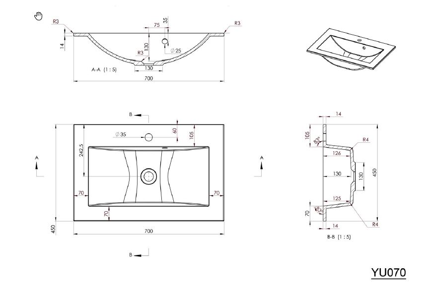 Umywalka wpuszczana w blat YUKON
