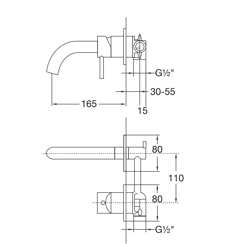 - wysięg wylewki: 165 mm