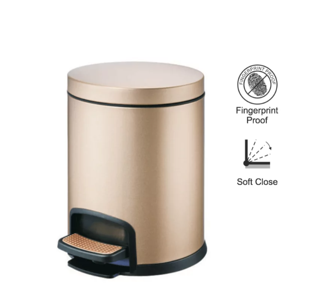 Kosz pedałowy PREMIUM, okrągły, 5L / złoty