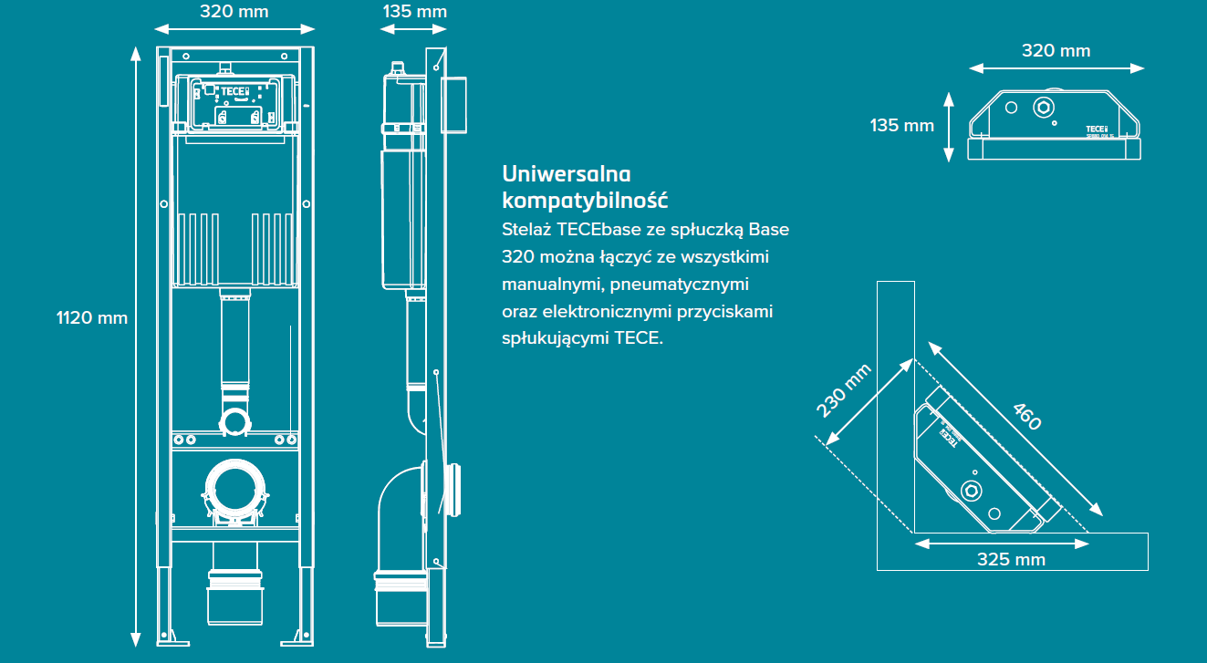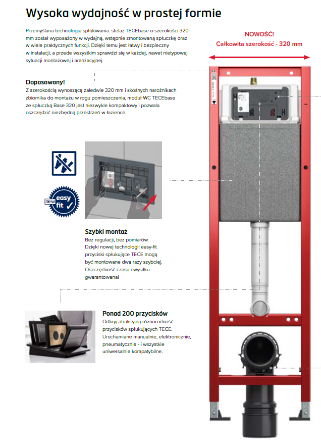 • kompatybilny z ponad 200 przyciskami spłukującymi TECE z technologią łatwego montażu easy fit - bez użycia narzędzi