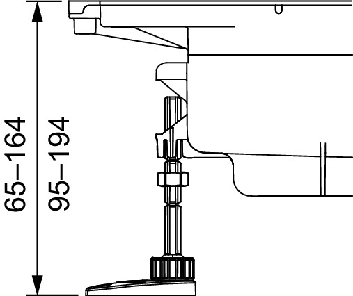 Stopki montażowe do syfonu odpływowego Tece do łatwej regulacji wysokości i wypoziomowania podczas montażu na stropie.Zakres regulacji 95-194 mm lub 65-164 mm ( od dolnej krawędzi stopki do górnej krawędzi odpływu.