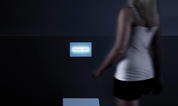 • Czujnik wykrywa gdy ktoś zbliża się do toalety i tylko wtedy podświetlają się przyciski spłukujące.