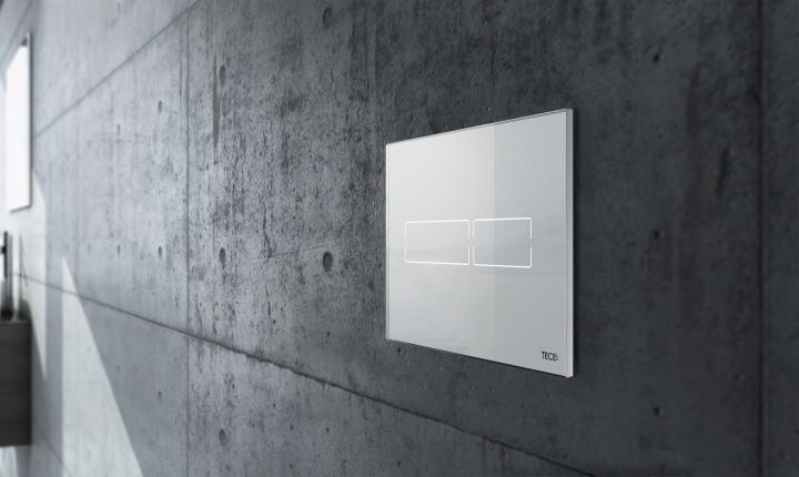 TECElux Mini to elektroniczny szklany przycisk spłukujący do spłuczek TECE  Spłukiwanie uruchamia się bezdotykowo lub przez lekkie dotknięcie powierzchni przycisku.