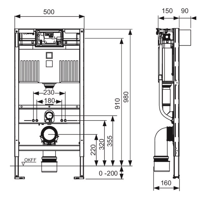 TECEprofil - uniwersalny stelaż podtynkowy do WC ze spłuczką podtynkową uruchamianą z góry lub z przodu, wysokość 980 mm.