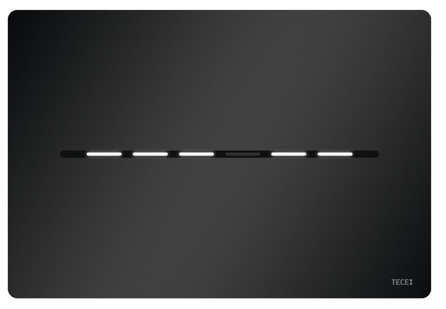 Czujnik wykrywa, gdy ktoś zbliża się do toalety i tylko wtedy podświetla przyciski spłukujące. uruchamianie spłukiwania za pomocą lekkiego dotyku lub bezdotykowo. Elektronikę WC TECEsolid można dopasować do indywidualnych wymagań za pomocą aplikacji programującej.