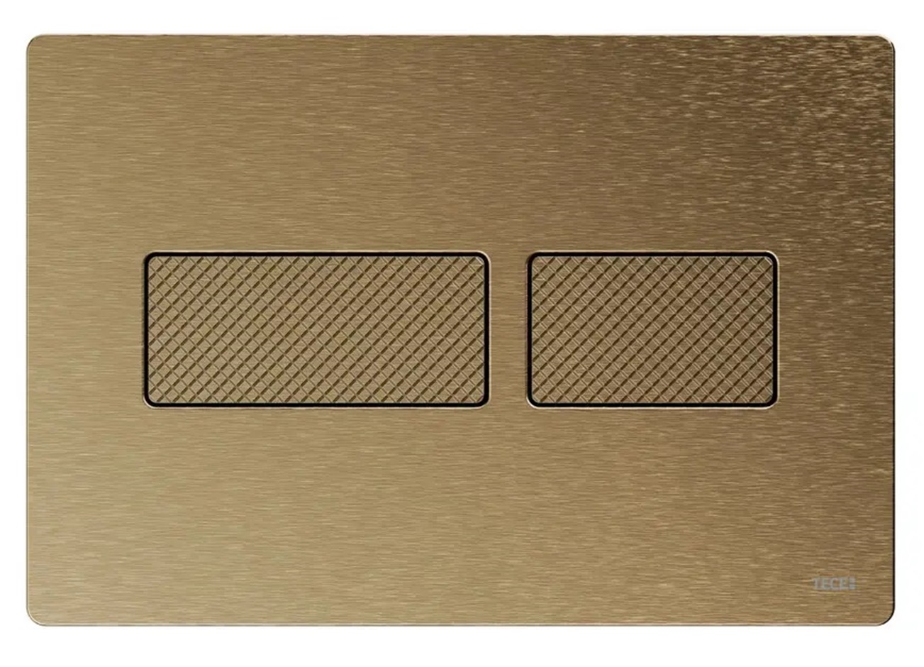 Przycisk TECEsolid dostępny jest w metalicznych i teksturowanych wariantach wykończenia. Nowoczesny, a zarazem uniwersalny design oraz subtelne, strukturalne wykończenie wprowadza go do ligi klasyki designu