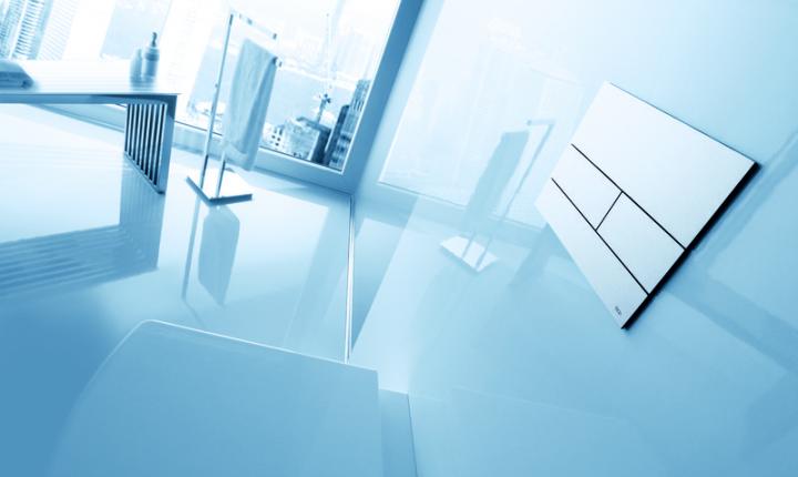 Powierzchnia ze stali nierdzewnej z powłoką zapobiegającą zostawaniu odcisków palców nadaje szlachetny wygląd Przyciski spłukujące TECEsquare ze szklaną powierzchnią też mogą być zlicowane przy użyciu ramki montażowej do WC.