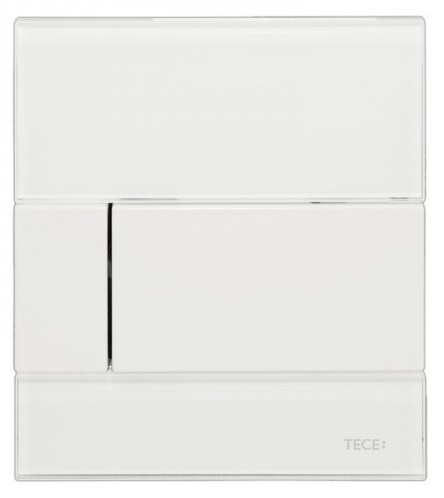 Dzięki minimalistycznemu wzornictwu przyciski spłukujące TECEsquare ze szkła stawiają na efekt estetyczny materiału. Do poszczególnych przycisków spłukujących do WC dostępne są uzupełniająco dopasowane fronty z białego, zielonego lub czarnego szkła. Przyciski spłukujące TECEsquare ze szklaną powierzchnią też mogą być zlicowane przy użyciu ramki montażowej do pisuaru. Ramkę należy zamawiać osobno.