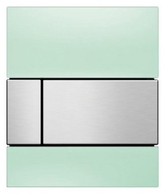 Dzięki minimalistycznemu wzornictwu przyciski spłukujące TECEsquare ze szkła stawiają na efekt estetyczny materiału. Do poszczególnych przycisków spłukujących do WC dostępne są uzupełniająco dopasowane fronty z białego, zielonego lub czarnego szkła. Przyciski spłukujące TECEsquare ze szklaną powierzchnią też mogą być zlicowane przy użyciu ramki montażowej do pisuaru. Ramkę należy zamawiać osobno.