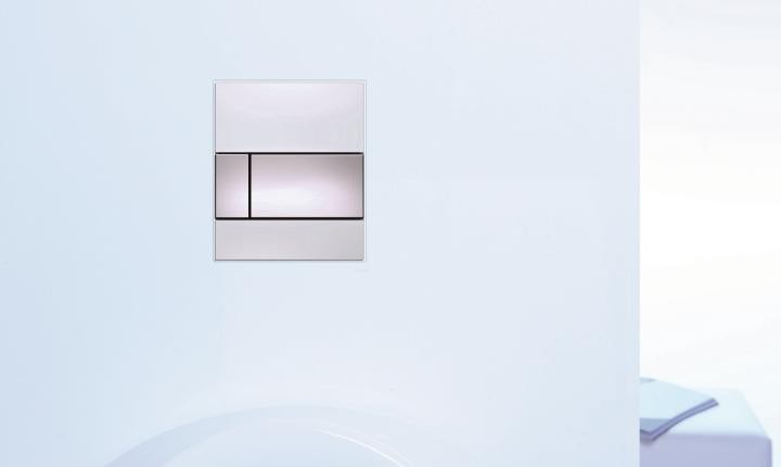 TECEsquare jest też dostępny z obudową szklaną. Tak jak w serii TECEloop, przyciski spłukujące mogą być montowane na ścianie a także - przy użyciu specjalnej ramki montażowej - w wersji zlicowanej. TECEsquare jest odpowiedni do uruchamiana z przodu lub od góry.