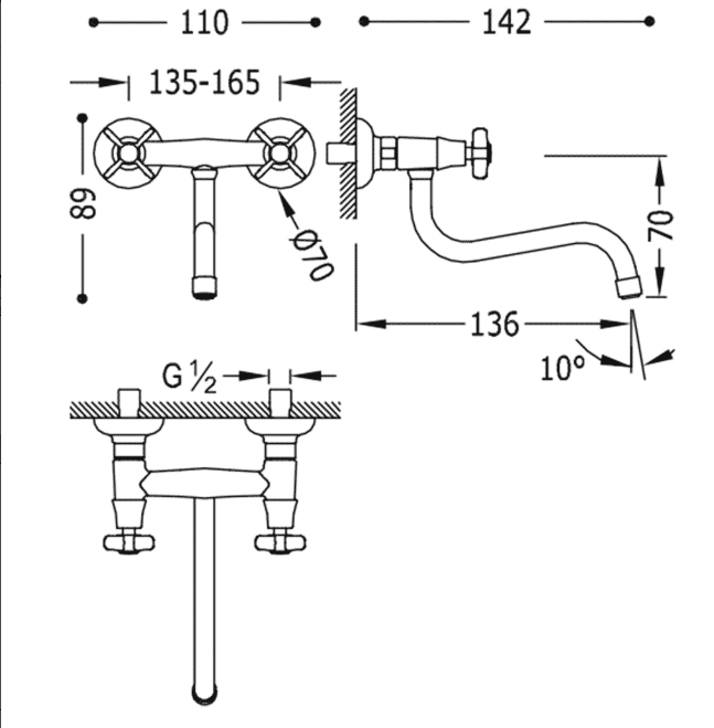 TRES-CLASIC Bateria zlewozmywakowa stojąca ścienna