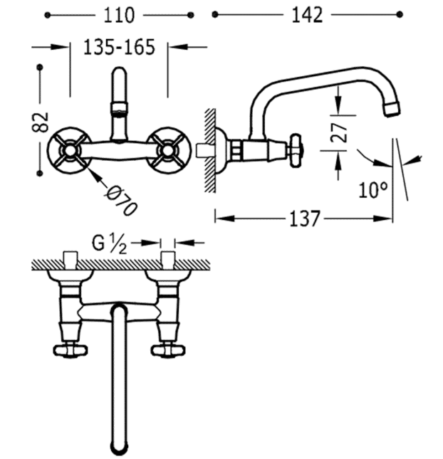 TRES-CLASIC COLOR Bateria zlewozmywakowa stojąca ścienna