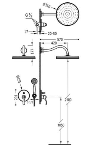 Tres MonoClasic zestaw prysznicowy z baterią podtynkową