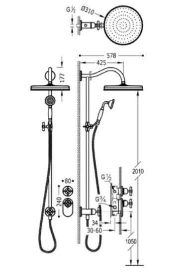 Opinie o: Tres Clasic zestaw prysznicowy termostatyczny z baterią podtynkową z deszczownicą stary mosiądz 242.352.03.LV