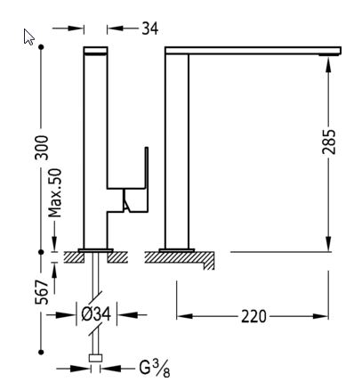 Tres Cuadro bateria umywalkowa wysoka chrom 006.485.01