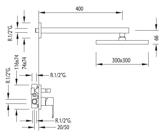 W zestawie nowy model deszczownicy zamiast głowicy wykonanej z ABS 25x25 jest głowica mosiężna kwadratowa 30x30 (Deszczownica Tres nr kat. 1.34.138.30)
