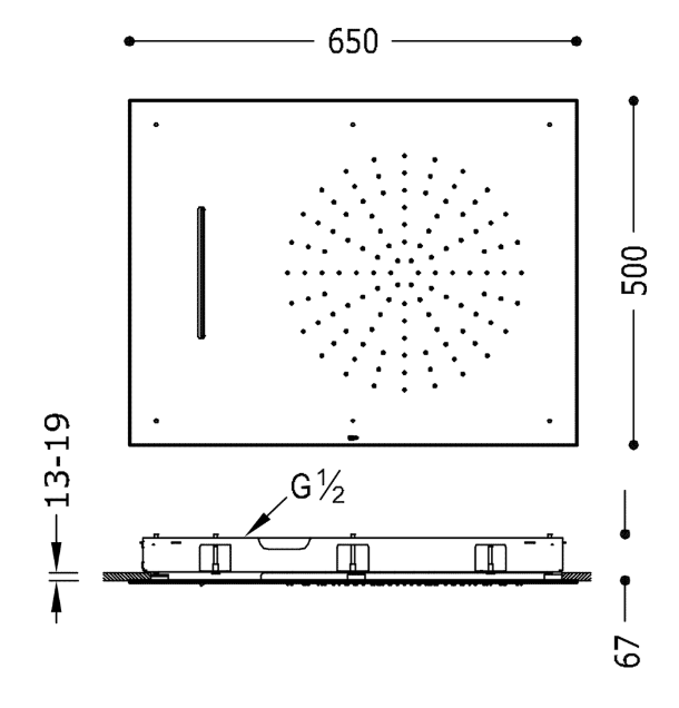 Antical. 2 rodzajów strumienia (Deszczownice/Kaskadą). 500x650 mm.