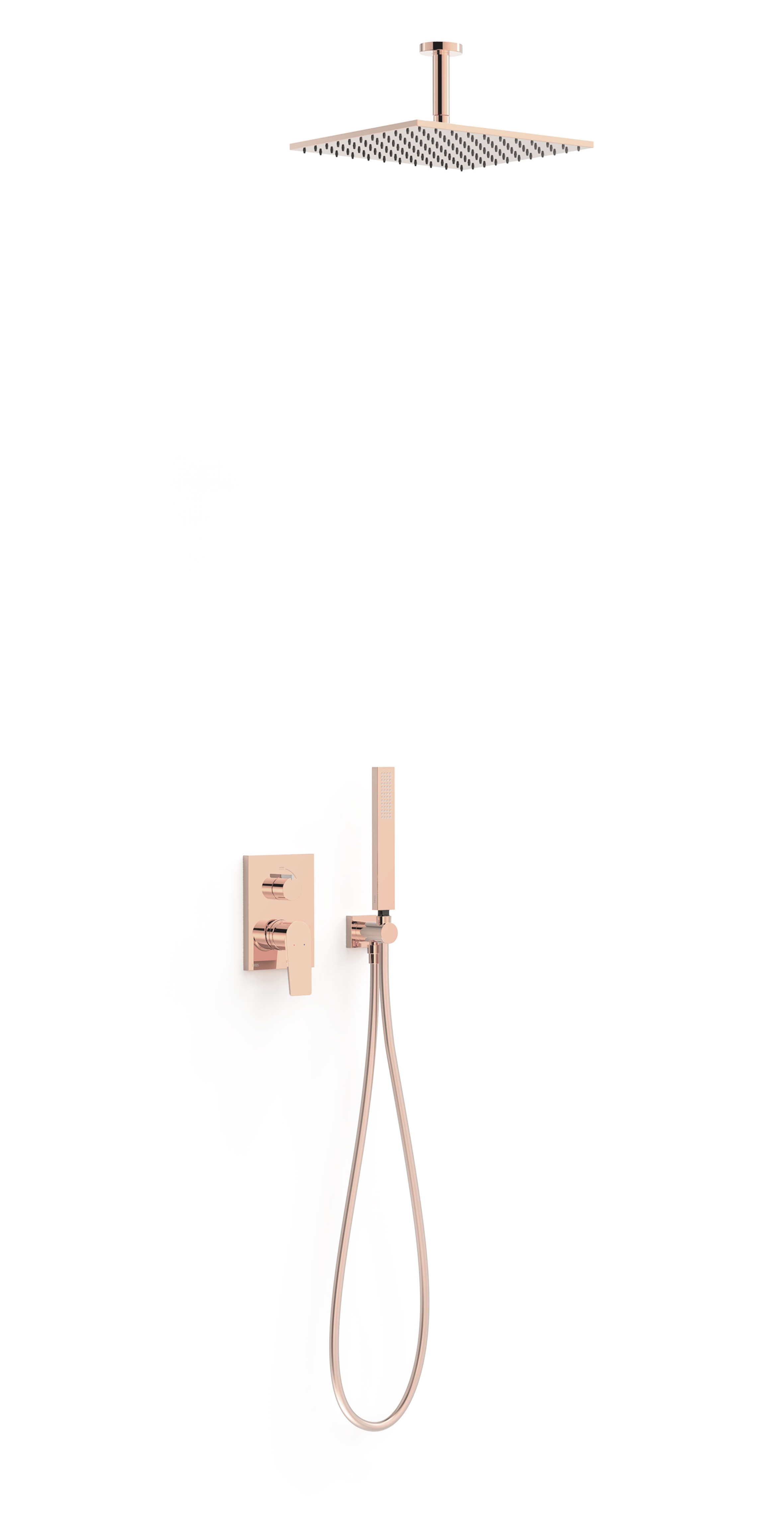 Tres Exclusive Project-Tres zestaw prysznicowy podtynkowy z deszczownicą 30x30 kompletny 24K różowe złoto 21128003OP