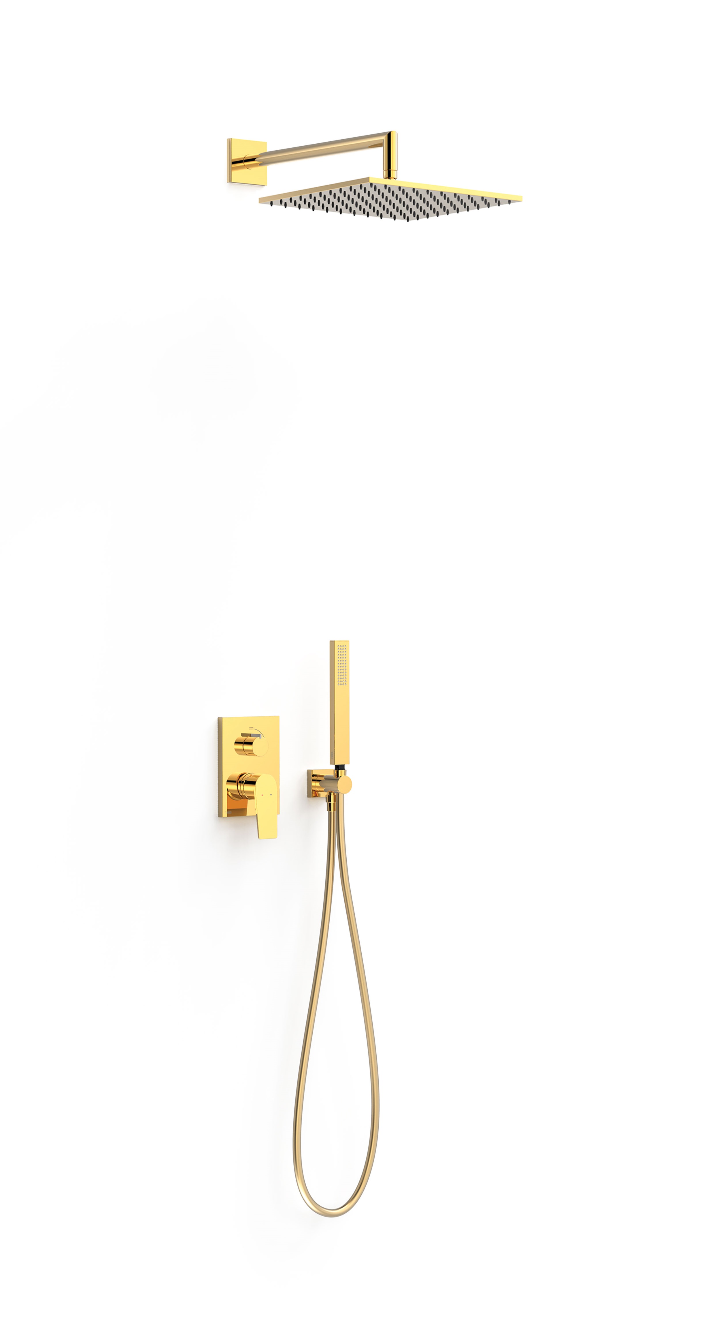 Tres Exclusive Project-Tres zestaw prysznicowy podtynkowy z deszczownicą 30x30 kompletny 24K złoto 21128004OR