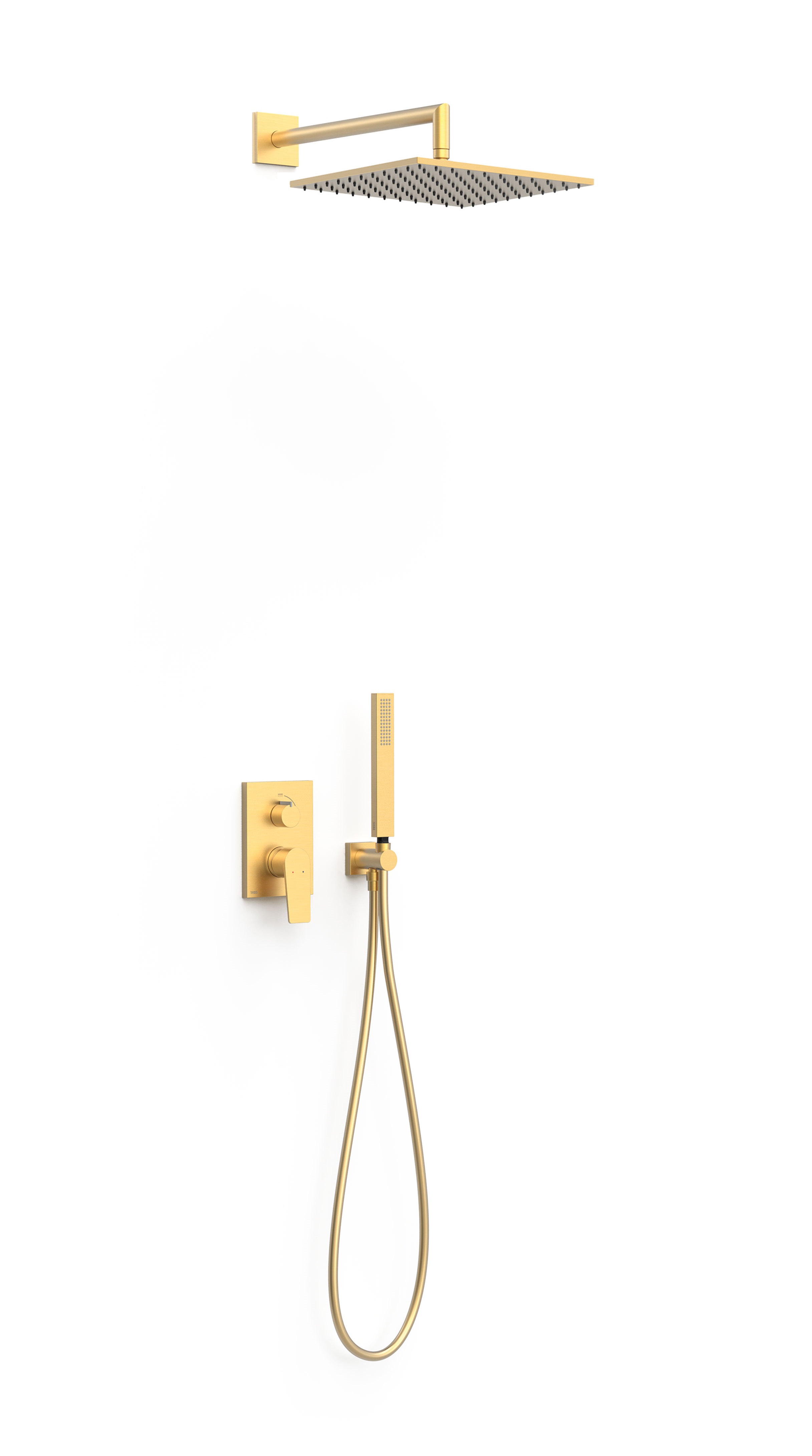 Tres Exclusive Project-Tres zestaw prysznicowy podtynkowy z deszczownicą 30x30 kompletny 24K złoto matowe 21128004OM