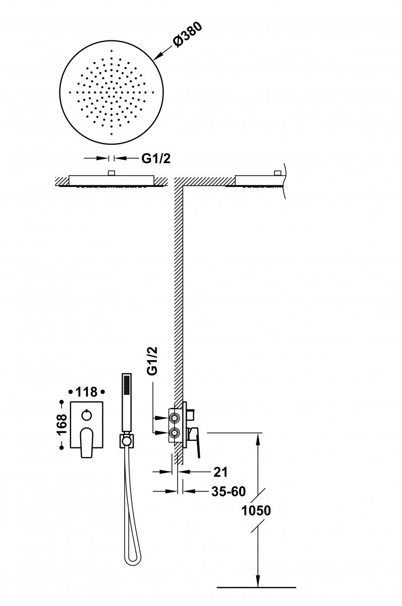 Tres Exclusive Project-Tres Zestaw natryskowy z baterią podtynkową Rapid-Box z regulacją strumienia.