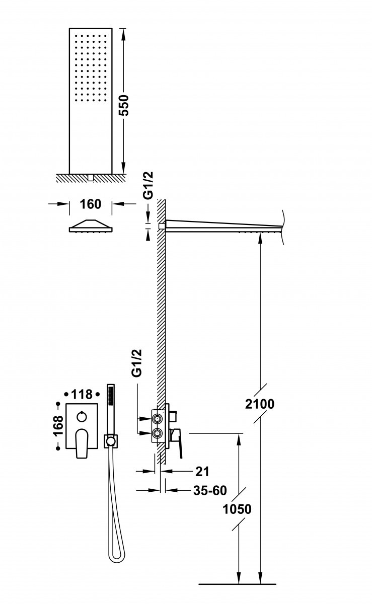 Tres Exclusive Project-Tres Zestaw natryskowy z baterią podtynkową Rapid-Box z regulacją strumienia.