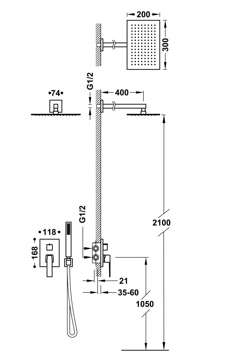 Tres Slim Exclusive zestaw prysznicowy podtynkowy z deszczownicą