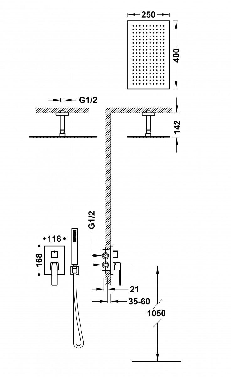 Tres Slim Exclusive zestaw prysznicowy podtynkowy z deszczownicą
