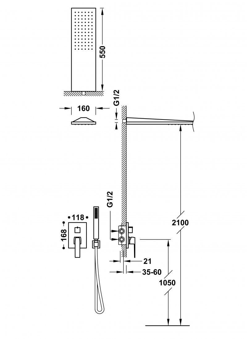 Tres Slim Exclusive zestaw prysznicowy podtynkowy z deszczownicą
