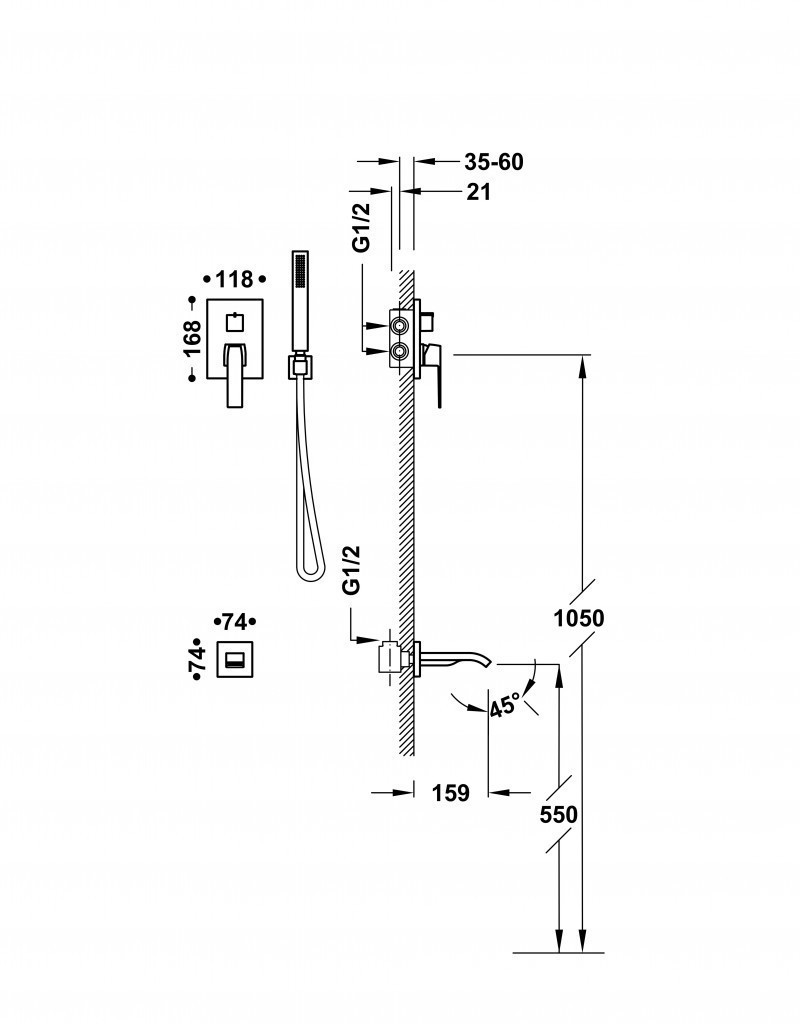 Tres Slim Exclusive zestaw wannowy podtynkowy z wylewką