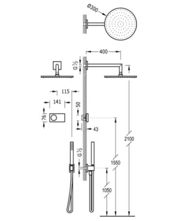 Kompletny zestaw natryskowy z elektroniczną baterią termostatyczną.
