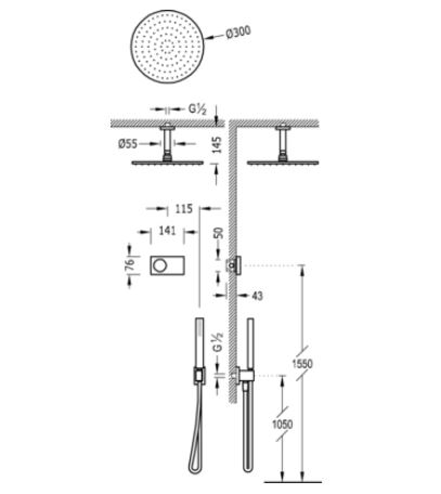 Kompletny zestaw natryskowy z elektroniczną baterią termostatyczną.