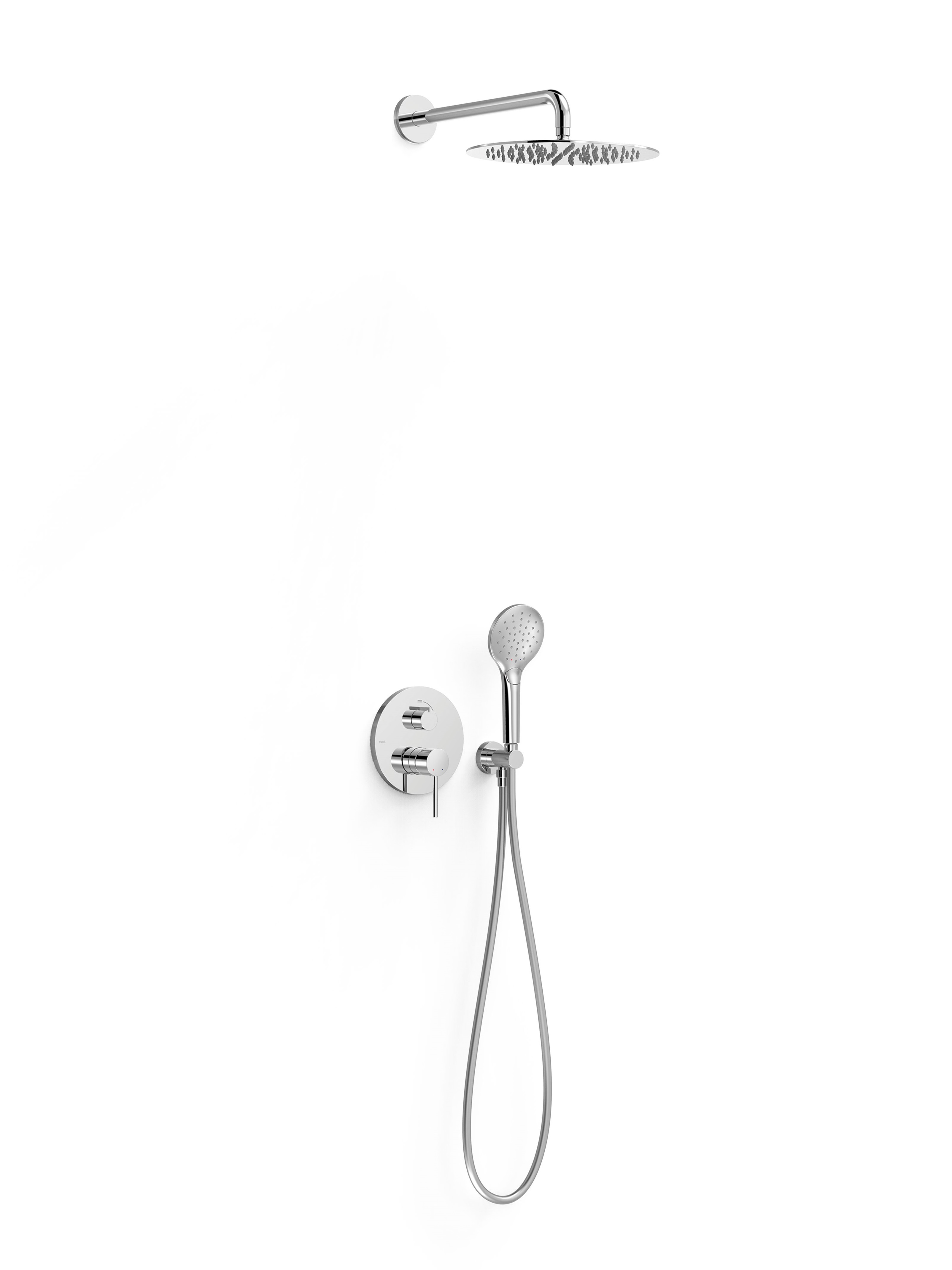 Zestaw natryskowy z baterią podtynkową Rapid-Box z regulacją strumienia.