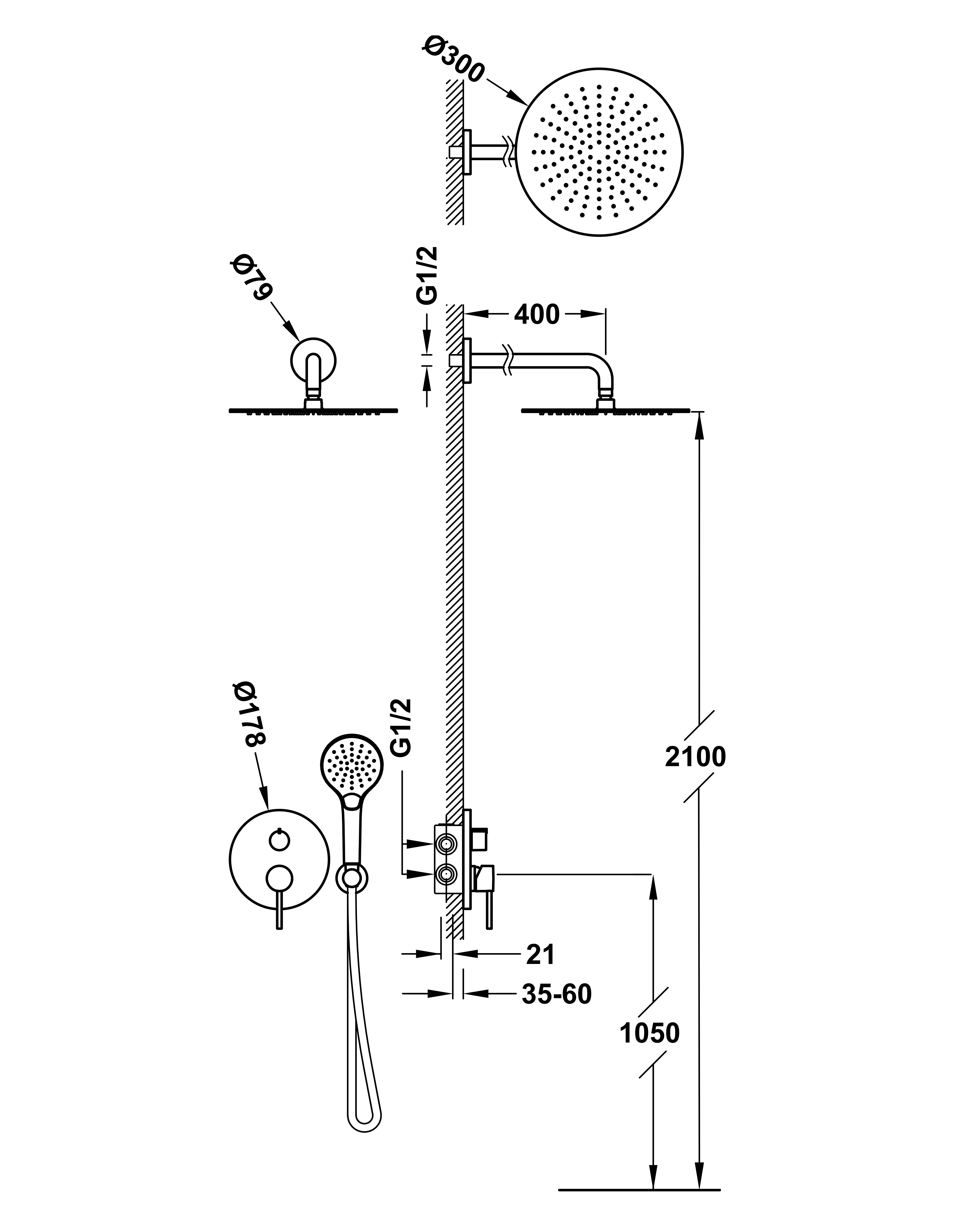 • Deszczownica ze stali nierdzewnej Ø 300 mm. z ramieniem ściennym
