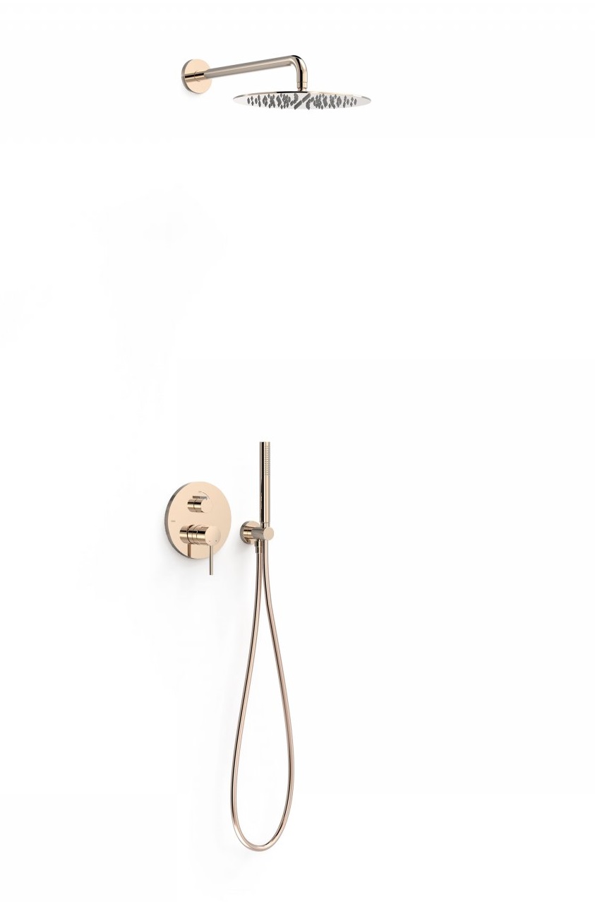 Tres Study Exclusive zestaw prysznicowy podtynkowy z deszczownicą 30x30 kompletny różowe złoto 26228004OP