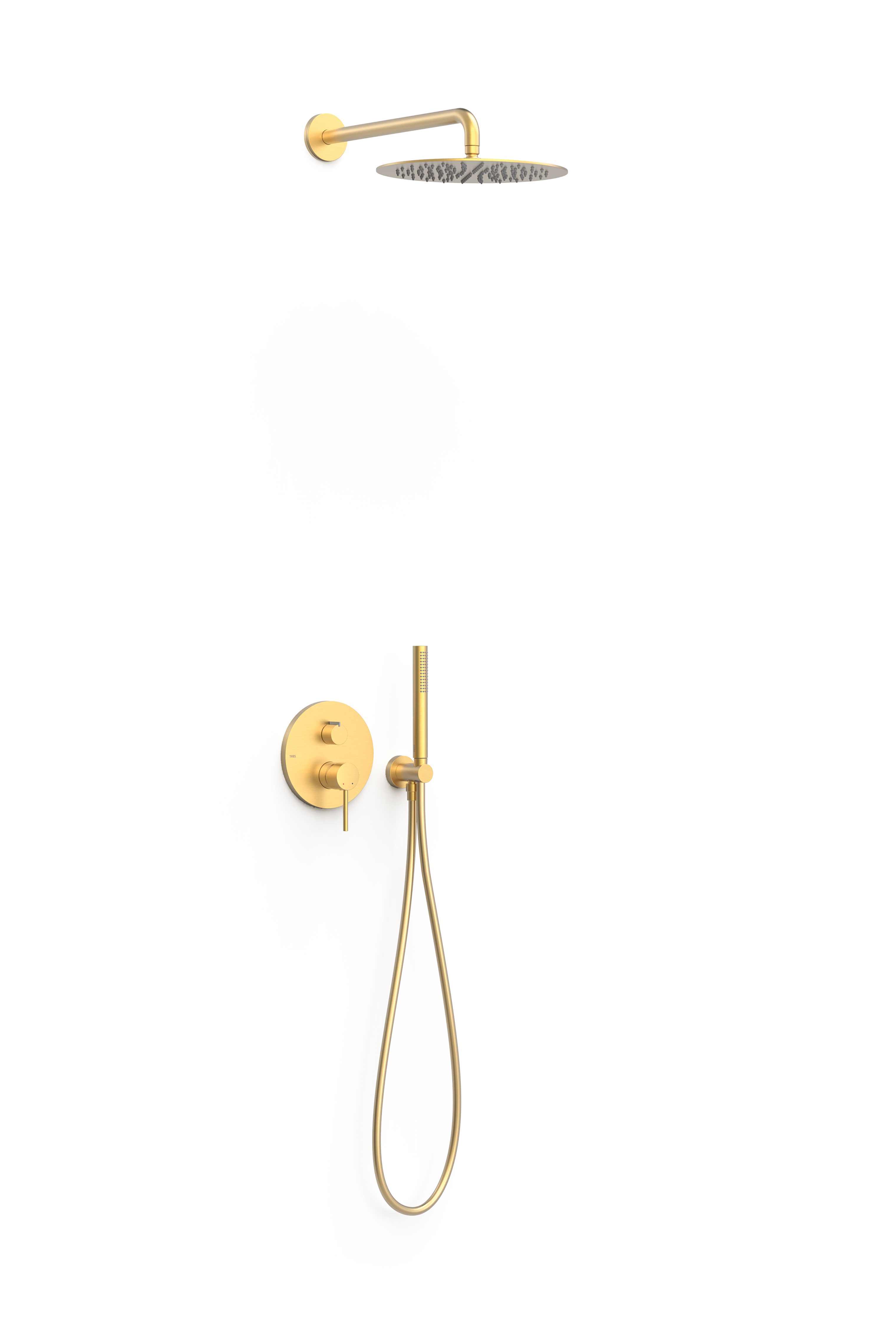 Tres Study Exclusive zestaw prysznicowy podtynkowy z deszczownicą 30x30 kompletny złoty matowy 26228004OM