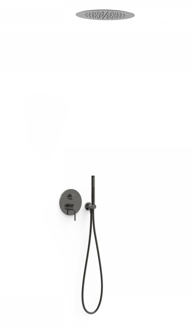 Tres Study Exclusive zestaw prysznicowy podtynkowy z deszczownicą sufitową 38x38 kompletny czerń metalizowana szczotkowana 26228005KMB