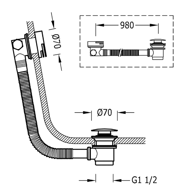 Syfon wannowy i okrągły zawór napełniający KASKADA z przelewem