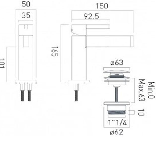 Vado Edit bateria umywalkowa z korkiem typu klik-klak chrom.